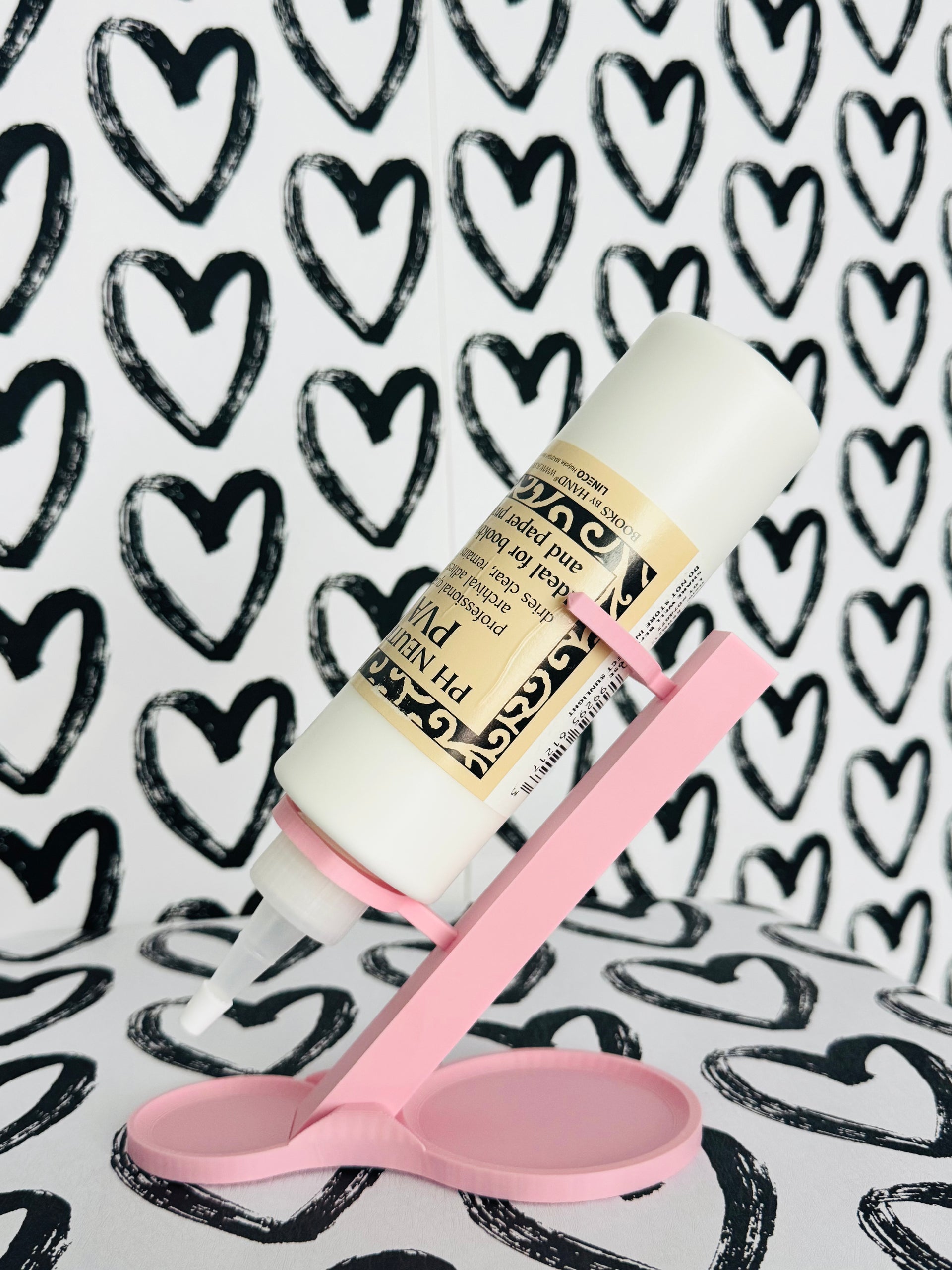 Descubre el soporte perfecto para organizar tus botellas de pega mientras trabajas en tus proyectos de scrapbooking, costura, agendas personalizadas y manualidades. Este soporte está impreso en PLA de alta calidad, diseñado para adaptarse a diferentes tamaños de pega, desde frascos pequeños tipo punta fina hasta botellas más grandes.